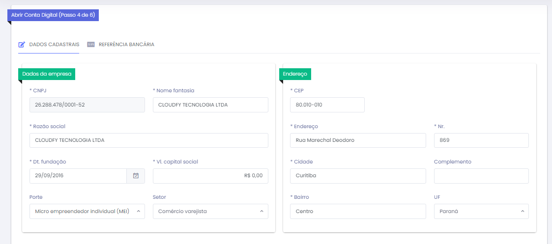 1. Um dos sócios deve ter o mesmo celular e e-mail informados para o cadastro da empresa realizado nas etapas anteriores.